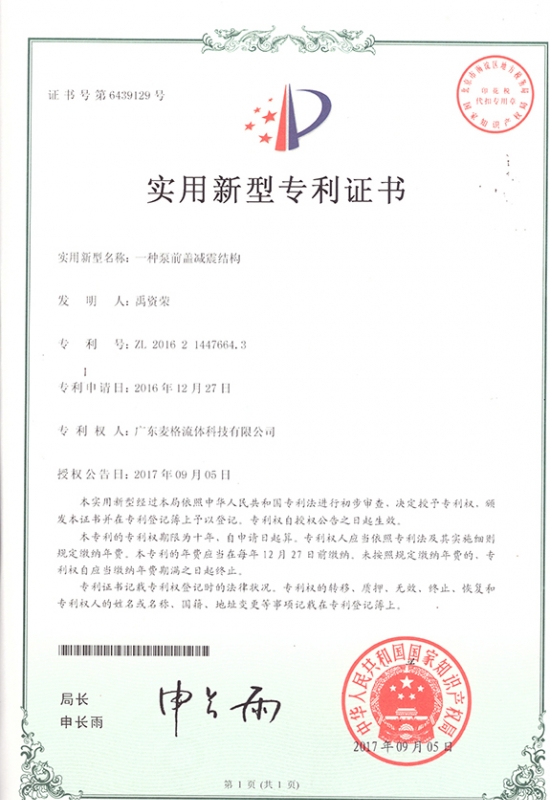 一種泵前蓋減震結構專利