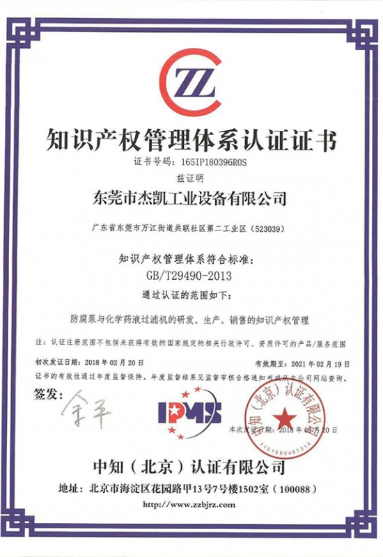 知識產權管理體系認證證書