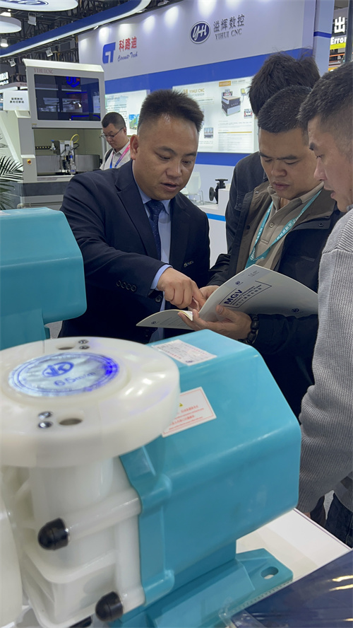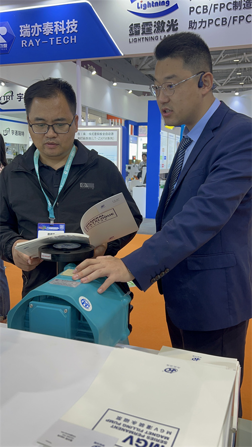 開展三日,杰凱流體展位始終人氣匯聚。我們重點展示了新品MGV罐裝永磁直驅泵,這款專為泛半導體、儲能、光伏等行業打造的化工泵,吸引了大量電路板生產廠商、設備集成商及技術決策者的駐足咨詢。